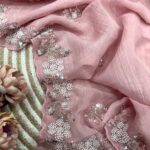 Be the first to review “Women’s Soft Pink Organza Saree with Delicate Pearl & Sequin Floral Embroidery – Lightweight Sheer Drape for Festive, Wedding & Party Wear”